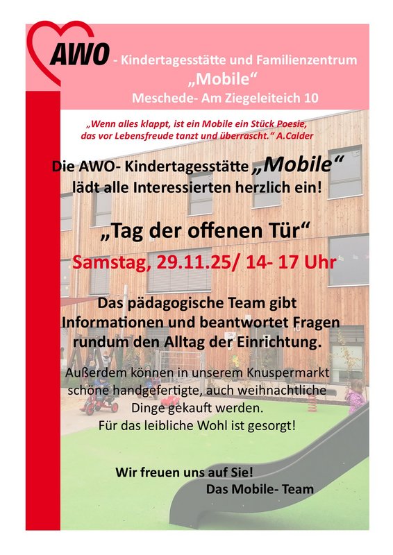 Wir laden alle Interessierten herzlich zum Tag der offenen Tür zu uns in die Kita und Familienzentrum Mobile ein!
