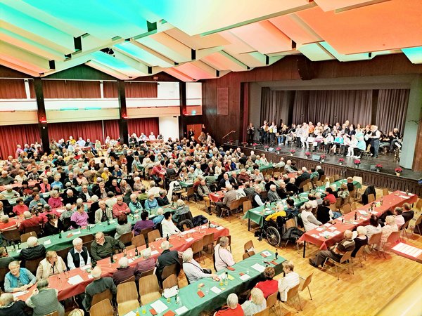 Zu dieser Veranstaltung hatte die Stadtverwaltung Rüthen alle Seniorinnen und Senioren ab dem 70. Lebensjahr in die Stadthalle eingeladen. Neben Tanz, Büttenreden und dem Grußwort des Rüthener Bürgermeisters Peter Weiken trat auch der AWO Projektchor vor 460 geladenen Gästen mit Heimat-, Volks- und Seemannsliedern auf und lud alle Anwesenden zum Mitsingen und Mitschunkeln ein.