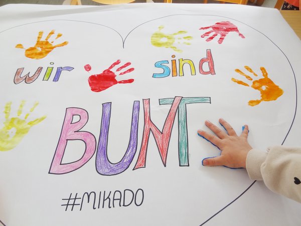 Die Kinder kamen bunt gekleidet in die Einrichtung und nahmen an diversen Kreativangeboten teil. Zudem wurden im Vorfeld Briefumschläge an die Eltern verteilt, mit der Bitte, landestypische Briefe zu gestalten und in dem Briefumschlag wieder an die Kita zu geben. Es wurden interkulturelle Rezepte, Traditionen, Fotos und Geschichten eingereicht und während der Internationalen Wochen gegen Rassismus im Flur der Kita Mikado ausgehangen.