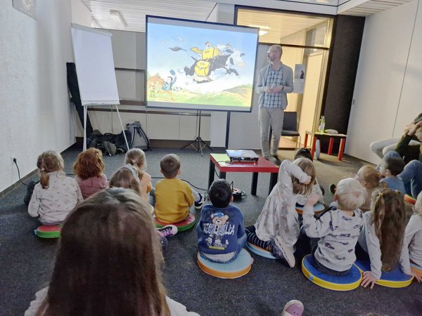 Ein ganz besonderer Nachmittag erwartete die 4- bis 6-jährigen Kinder der Kleinen Eiche bei einem Besuch in der St. Stephanus Bücherei. Auf Einladung des Büchereiteams fand dort eine Lesung mit dem bekannten Kinderbuchautor und Illustrator Alexander Steffensmeier statt – dem Schöpfer der beliebten Kuh Lieselotte.