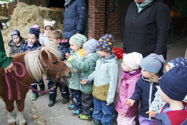 Der Tag begann aufregend: Ein eigener Reisebus holte die Kinder direkt vor dem Kindergarten ab – und los ging das Abenteuer. Auf dem Tiggeshof wurden wir herzlich von Marie Tigges empfangen, die uns durch den Tag begleitete.