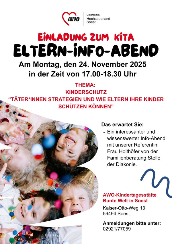Der Info-Abend findet in der AWO Kita Bunte Welt in Soest statt: