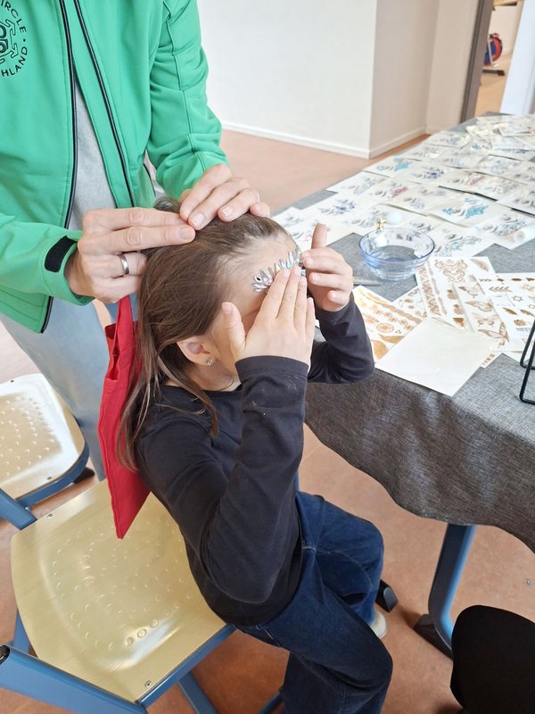 An einem weiteren Stand wurden den interessierten Besucherinnen Tattoos und Gesichtsschmuck angeboten.