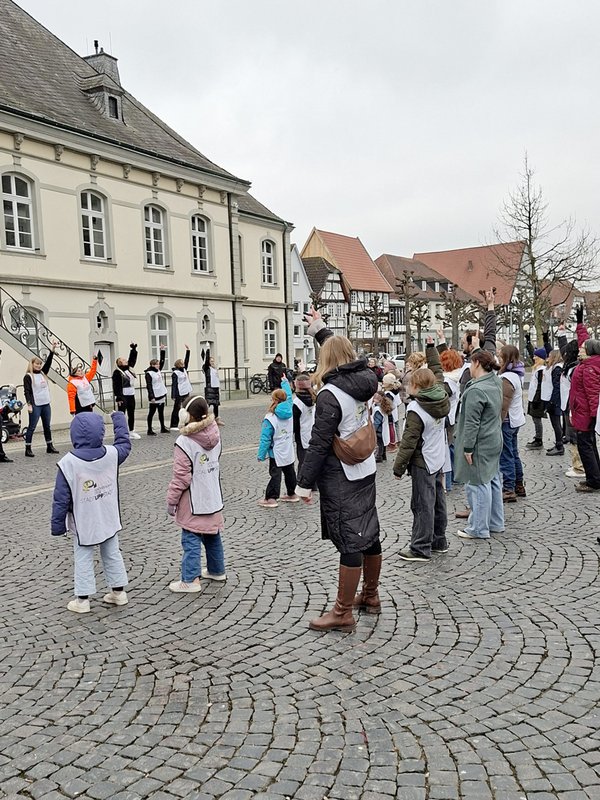 Nach einleitenden Worten der Gleichstellungsbeauftragten der Stadt Lippstadt, Daniela Franke, wurde die Choreografie von einer Zumba-Trainerin, Kerstin Karwath, erklärt, gemeinsam geübt und anschließend zweimal voller Energie getanzt.