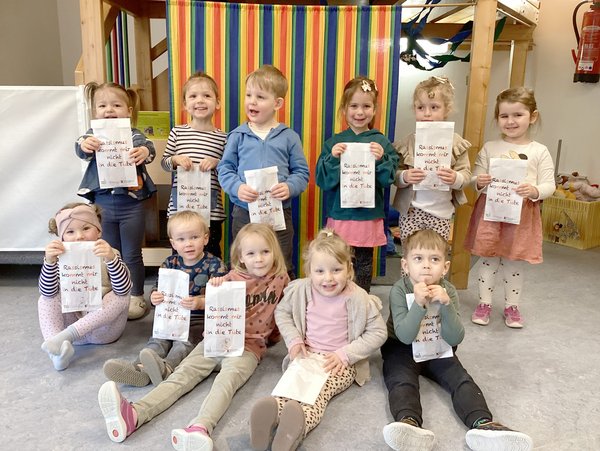 Auch die AWO Kita & Familienzentrum Rasselbande in Geseke nahm mit den Brötchentüten des Kommunalen Integrationszentrums im Kreis Soest teil und setzte ein Zeichen für Demokratie & Vielfalt.
