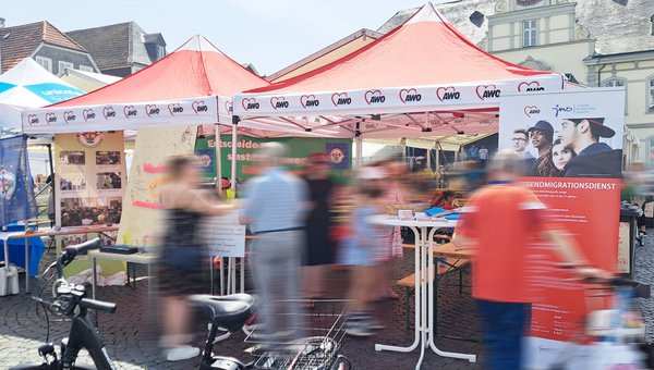 Am bislang heißesten Tag des Jahres fand in Lippstadt der 31. "Tag der Begegnungen der Kulturen" statt. Der AWO Jugendmigrationsdienst war mit großem Engagement dabei und nutzte die Gelegenheit, um mit den Bürgerinnen und Bürgern ins Gespräch zu kommen.